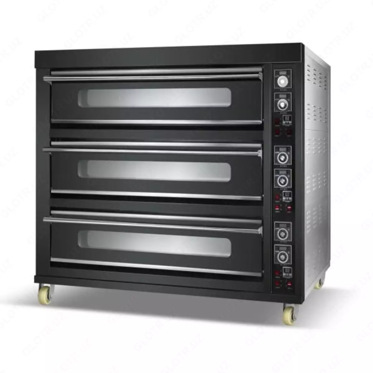 Электрическая печь "Kitmach Premium" серии RM (90) YCD-3-9D1 — это мощное профессиональное оборудование, предназначенное для интенсивной выпечки хлебобулочных и кондитерских изделий на производстве, в пекарнях, мини-хлебозаводах и кондитерских цехах. Модель оборудована тремя независимыми ярусами, каждый из которых обеспечивает равномерную термообработку благодаря точному контролю температуры.