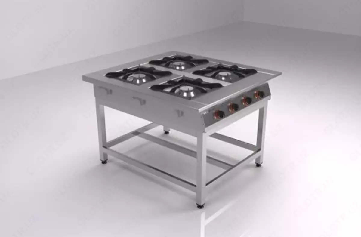 Промышленная газовая плита (4 конфорки) "Kitmach" горелки 400 х 400 мм, нерж. сталь