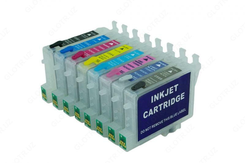 Перезаправляемые картриджи (ПЗК) для Epson предназначены для уменьшения стоимости печати и представляют из себя прозрачные пластиковые контейнеры с автообнуляемыми чипами. Благодаря таким чипам, счетчик уровня чернил сбрасывается после каждой выемки картриджа из принтера. Встречаются ПЗК для Epson с кнопкой обнуления. И те, и другие можно использовать до тех пор, пока не выйдут из строя клапаны или внутри емкостей не скопится мусор, из-за которого Вам все чаще придется делать прочистку дюз. Для больших объемов печати рекомендуется использовать СНПЧ для Epson - это позволит реже заправлять систему.