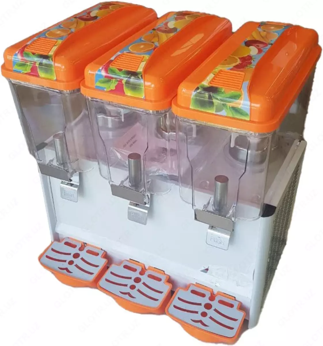 Сокоохладитель "Kitmach Premium" серии LSJ-12x3 — это профессиональное оборудование для охлаждения и подачи холодных напитков, идеально подходящее для кафе, баров, ресторанов, столовых, отелей и точек самообслуживания. Модель оснащена тремя круглыми резервуарами по 12 литров каждый, что позволяет одновременно предлагать до трёх различных напитков: соков, морсов, лимонадов, компотов и холодного чая.
