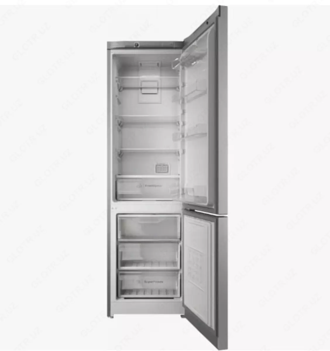"INDESIT" modeli ITS 4200G keng va texnologik jihatdan ilg'or ikki kamerali muzlatgich bo'lib, to'liq No Frost tizimiga ega bo'lib, muzlatgich va muzlatgich kameralarida bir xil sovutish va muz bo'lmasligini ta'minlaydi. Tananing qat'iy kulrang rangi tufayli u zamonaviy oshxonaning ichki qismiga juda mos keladi va unga oqlangan va ixcham ko'rinish beradi.